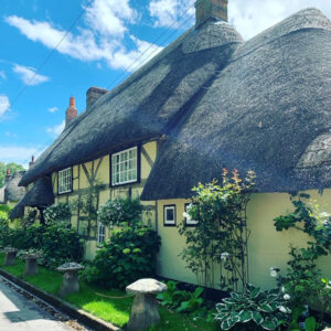 イギリス南部ハンプシャーにあるBlack Chalk、すぐにネットで1本注文。さらに 飲むだけじゃなくぜひぶどう畑を見に行 きたいと思いロンドンから出発しました。 車を走らせること1時間30分、そろそろ 近くに来たようだと思ったころ想像もしていなかった可愛い 村が目の前に。手入れの行き届いた茅葺屋根と木枠組の家。