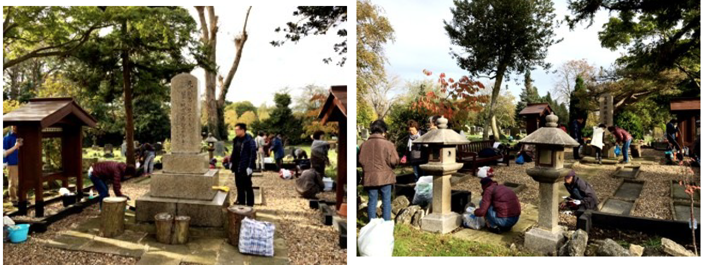 秋の墓地清掃が10月28日(土)11時より行われました。当日はお天気に恵まれ、会員、友人、多数のボランティアの参加が有りました。