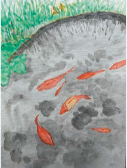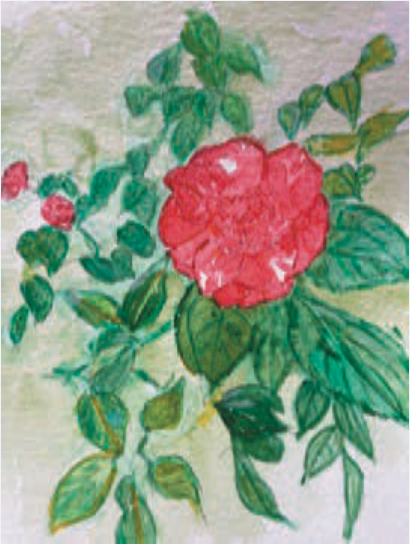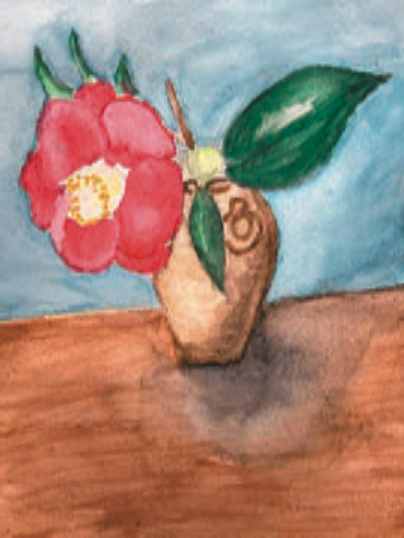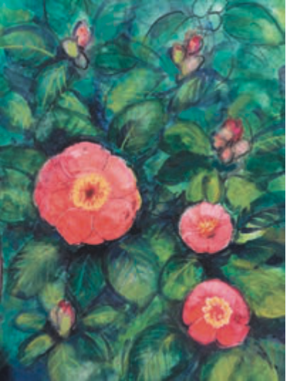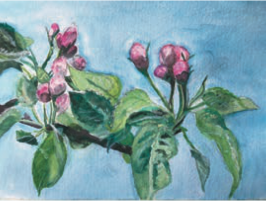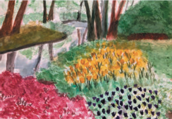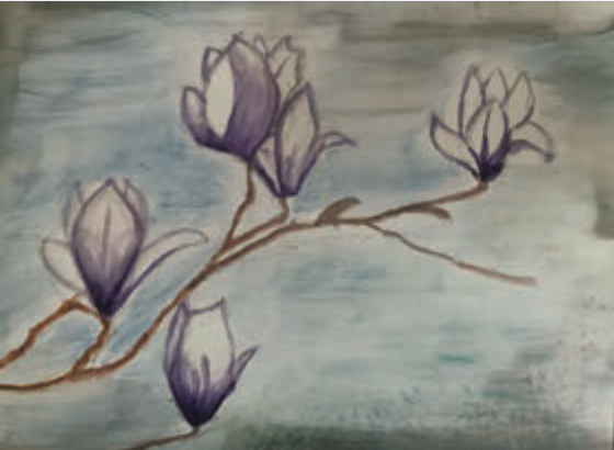 絵は<春の兆し>抽象的な解釈から自然に見た景色や 植物などを描いてみた。舞台や映画を見て感情を刺激 する事は絵を描く事につながる、これからも機会を作 り鑑賞は続けたいと思っている。