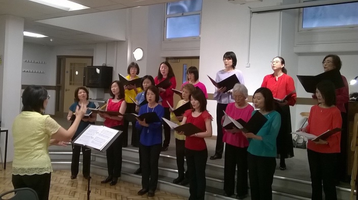 ロンドンで40年以上の歴史を持つ女声合唱団グリーンコーラスの皆さんの美しく澄んだ歌声を聞き、最後に私達もいっしょに「上を向いて歩こう」と「故郷」を合唱しました。現在専任指揮者とピアノ奏者のほか団員17名で年に1度の定期演奏会の他、ジャパン祭り等の日本関連のイベントや英国のイベントにも積極的に出演されています。
